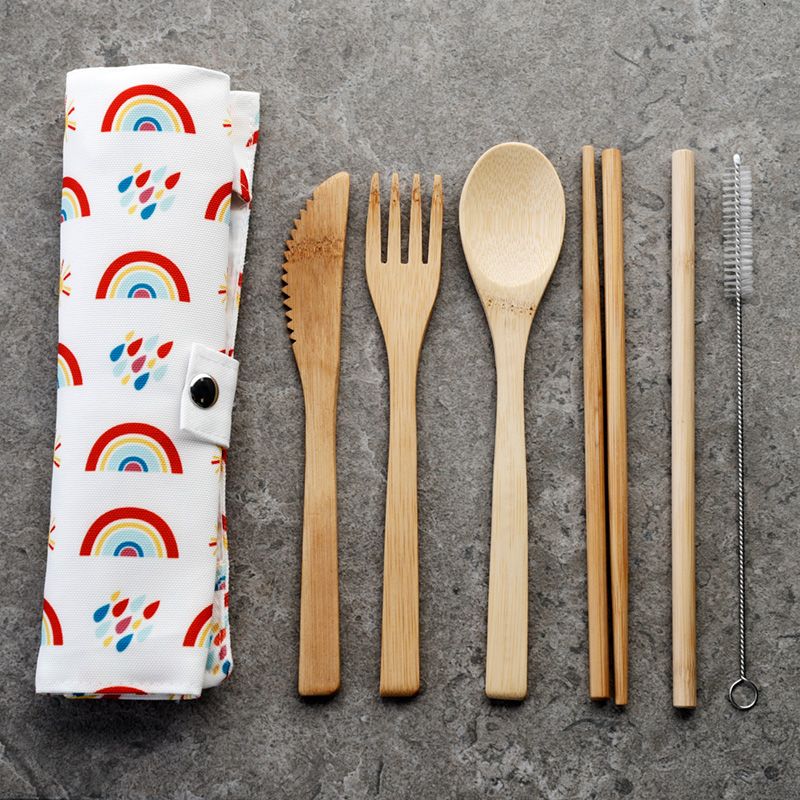Somewhere Rainbow 100% Natural Bamboo Cutlery 6 Piece Set