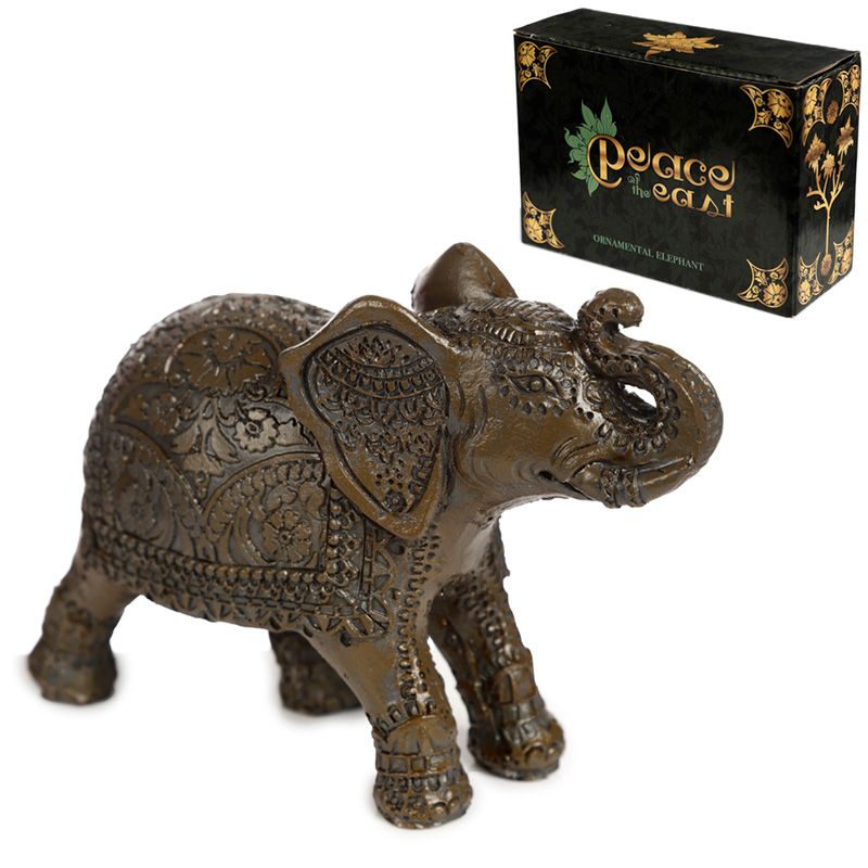 Peace of the East Dark Brushed Wood Effect Medium Thai Elephant Figurine